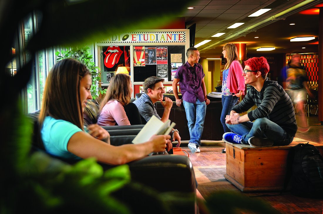Divertissement : soirées thématiques, sorties et activités de découverte, cuisine collective, ciné-clubs, spectacles de tous genres, cafés étudiants, centre social, piscine, équipes sportives, sports intramuraux, cafétéria, radio étudiante.